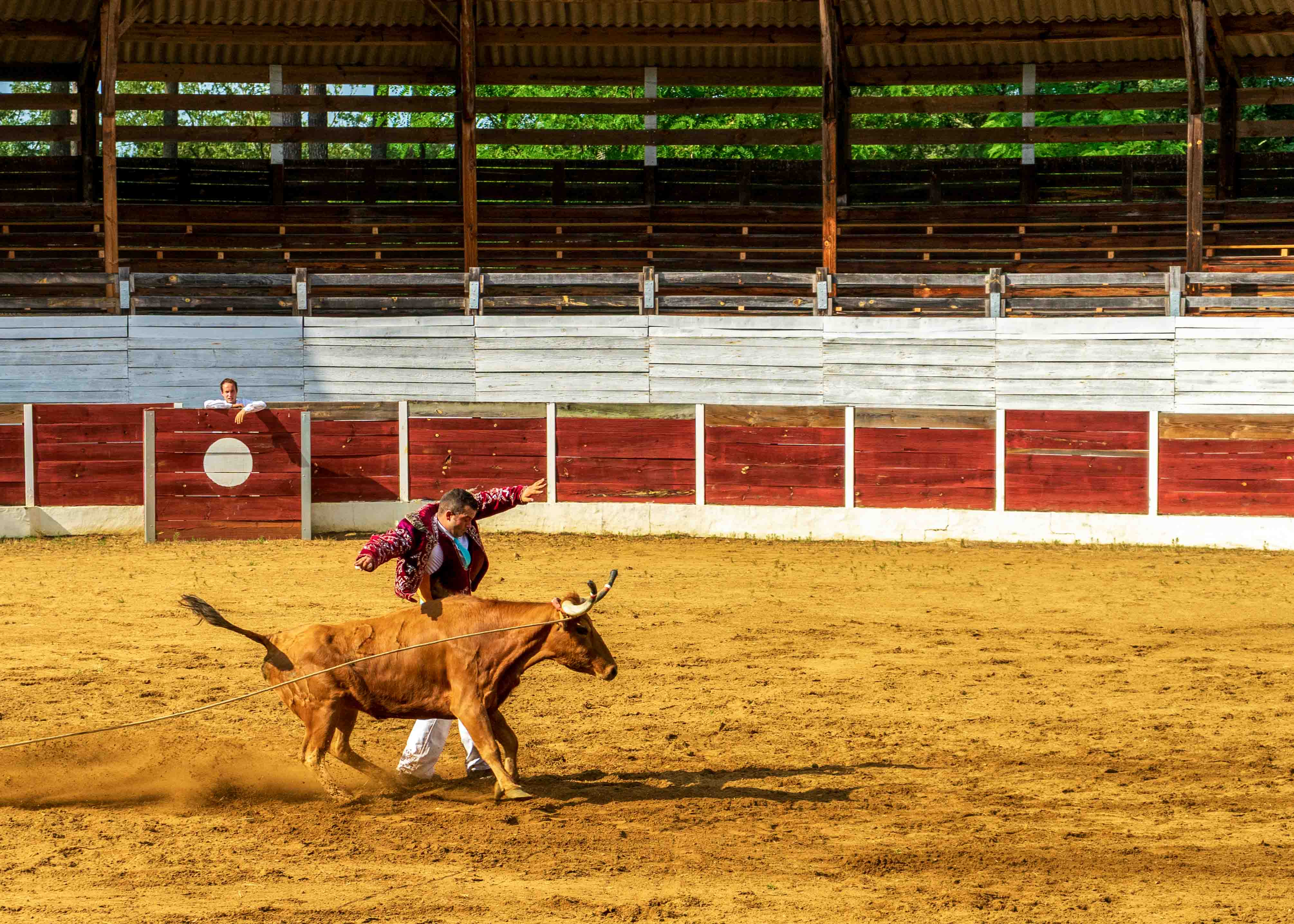 Der „Course Landaise“, aus der Region Gascogne im Südwesten Frankreichs, ist ein traditioneller, unblutiger Tanz mit der Kuh. Respekt vor dem Tier, Mut und Eleganz der Écarteur (Ausweicher) und Sauteur (Springer) stehen im Mittelpunkt des Spektakels.